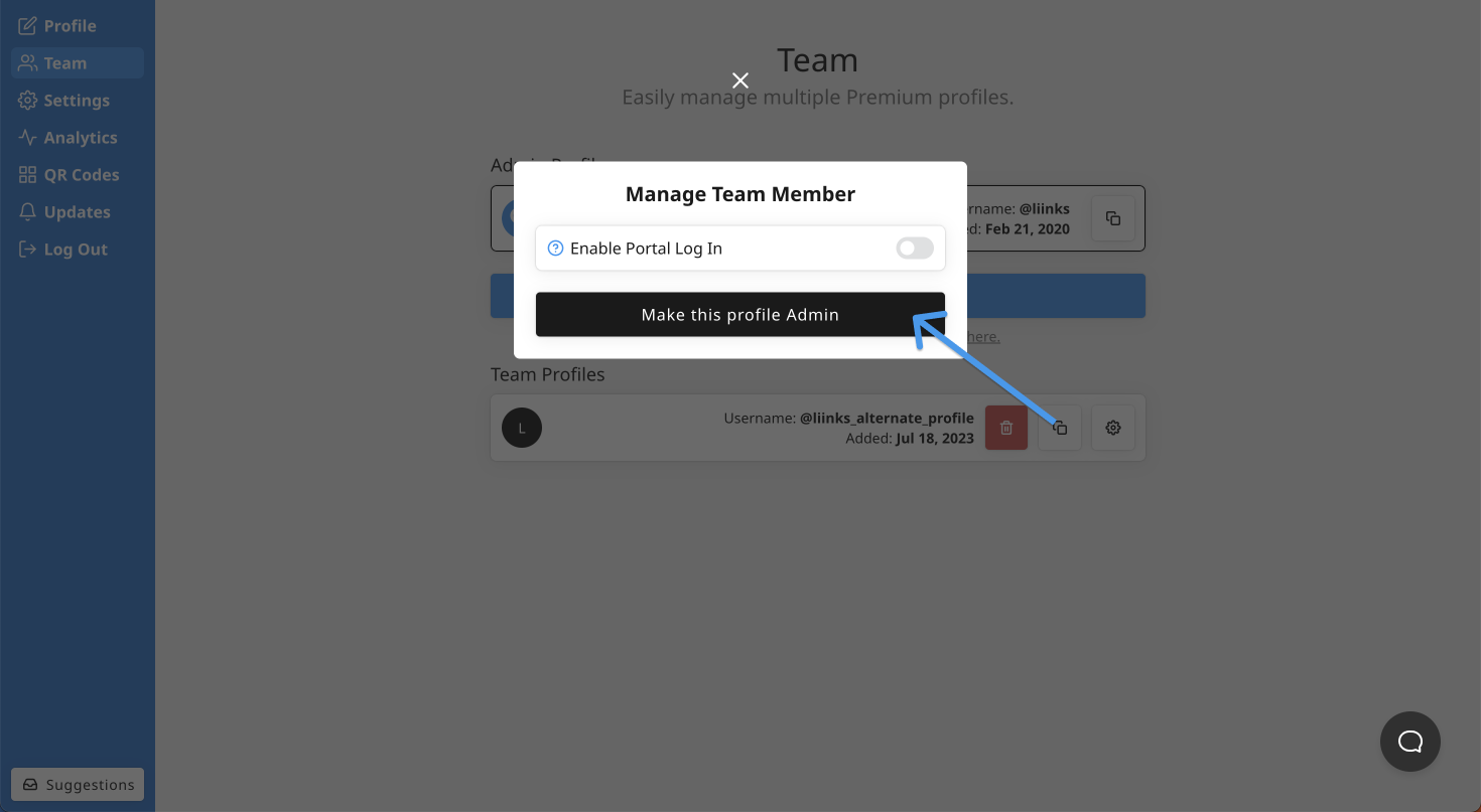 If you have multiple profiles in a Team, you can switch which profile is the Admin profile.
