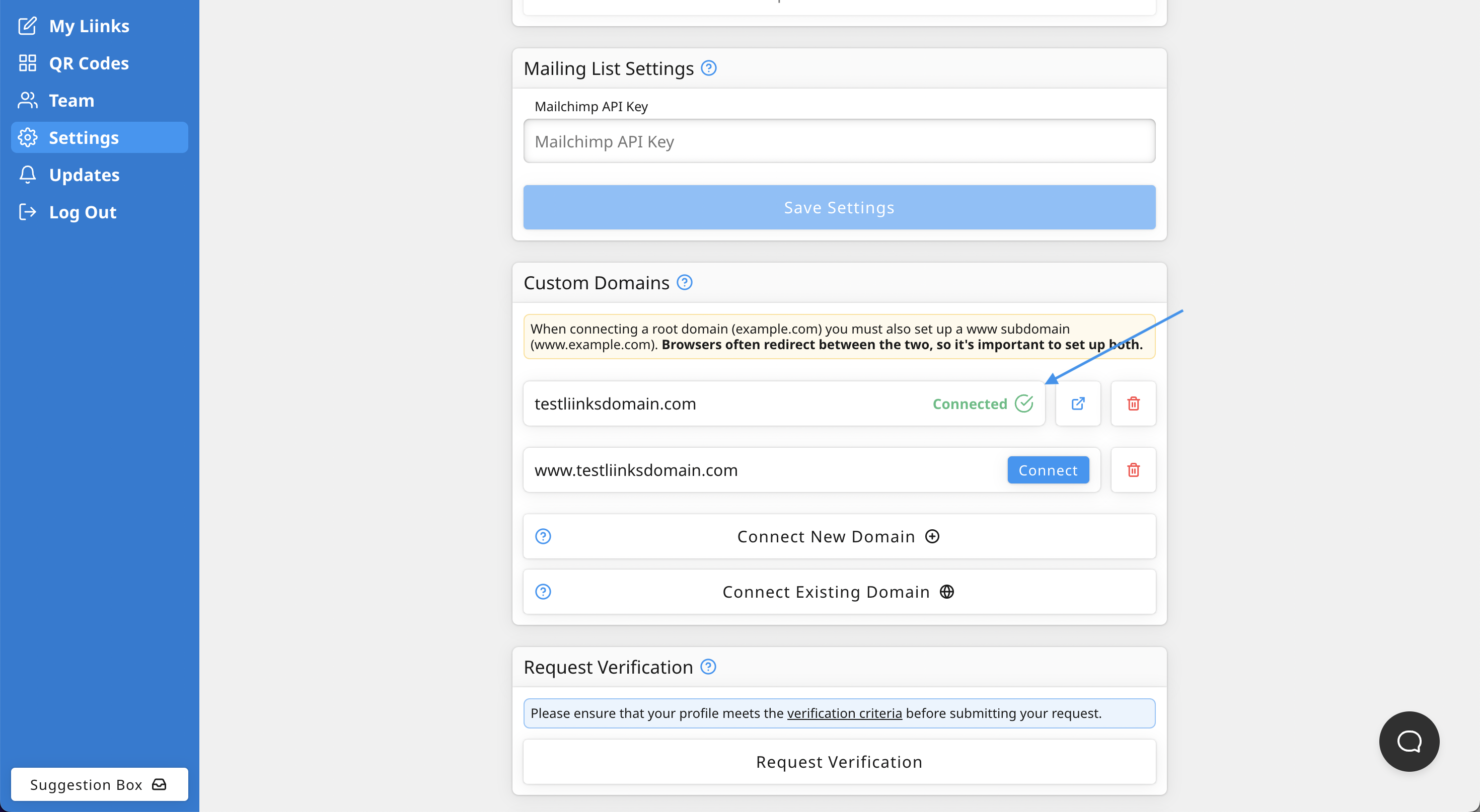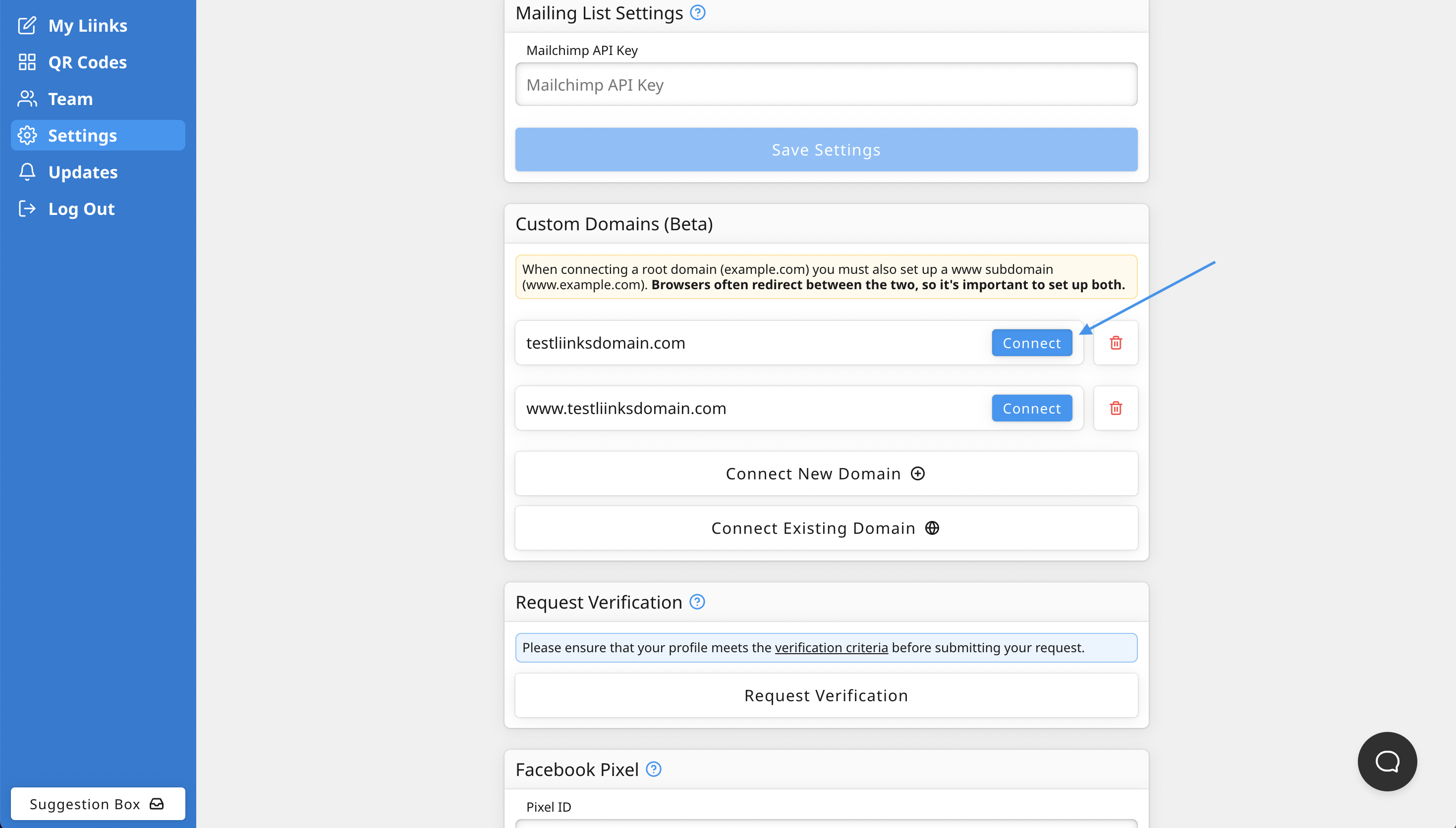 Follow these instructions to connect an existing domain to your Liinks profile.