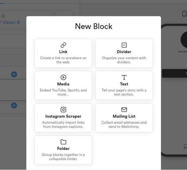 You have other options for styling and adding content to your page, too. The “Text” option lets you add text content to your profile, giving you the chance to tell your story. The Instagram scraper automatically pulls links from Instagram post descriptions.
