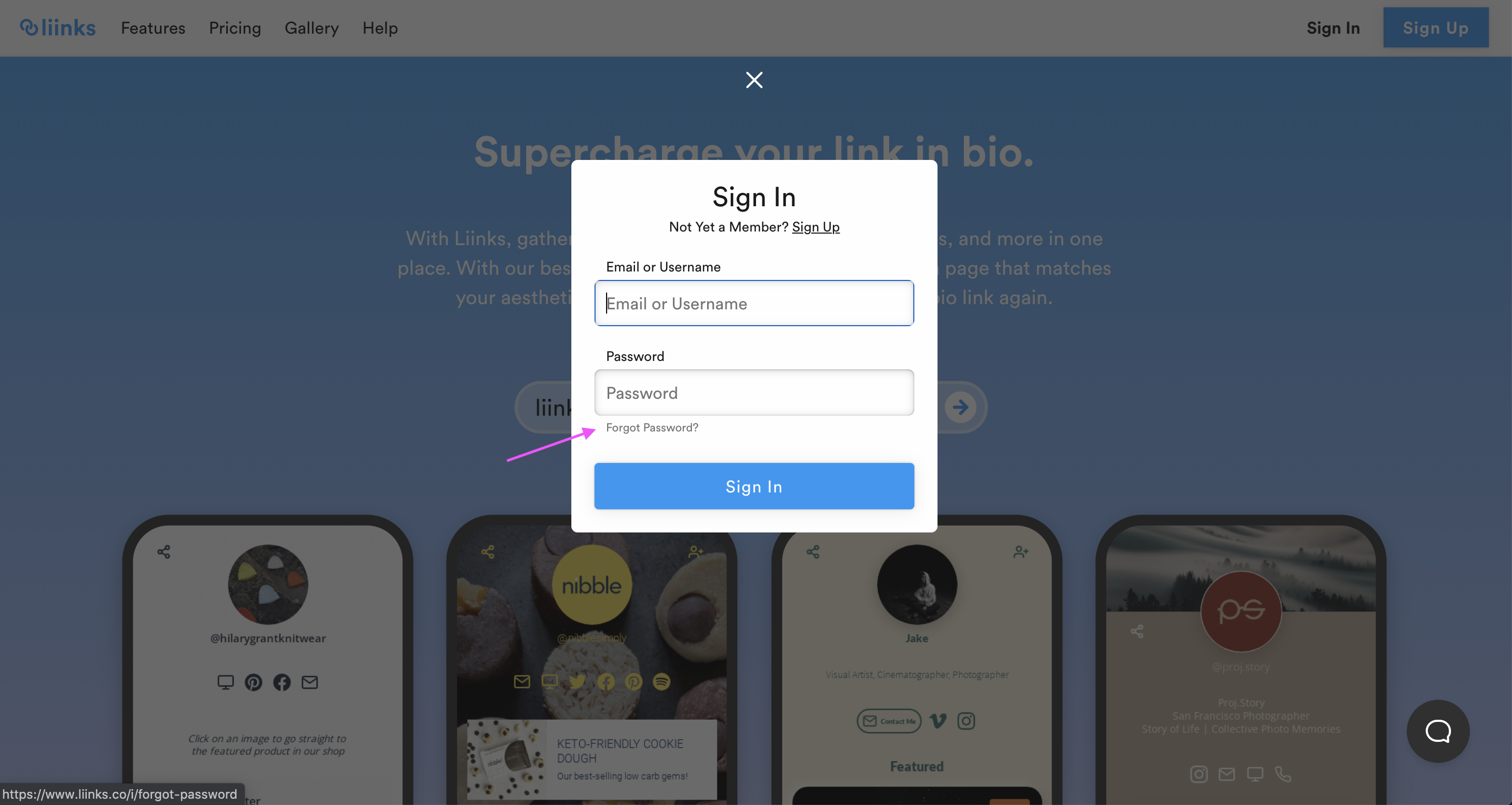 You can also access the "Forgot password" by clicking "Login" and then "Forgot password".